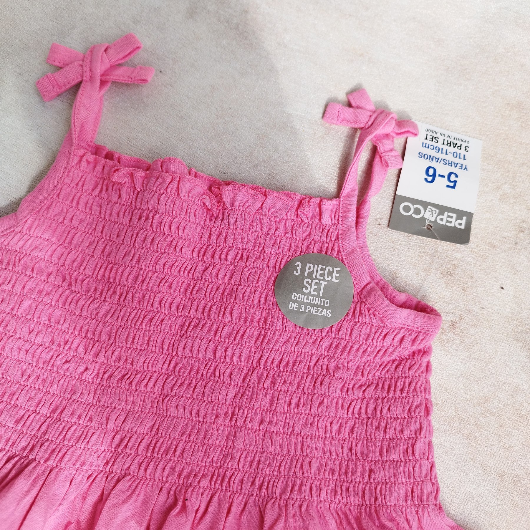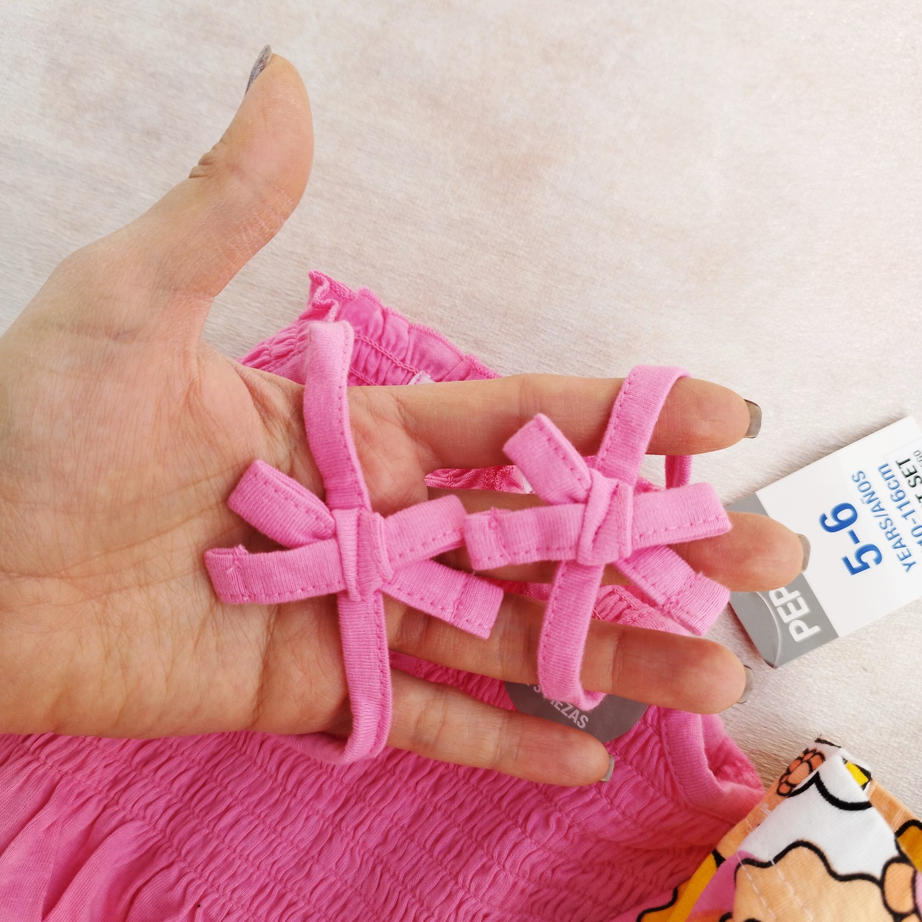 ست سارافون و نیم لگ برند pep&co بالا تنه کشدوزی و بند تاپ پاپیون دار نخ پنبه خنک و مناسب فصل تابستان ۲-۳ سال ۳-۴ سال ۴-۵ سال ۵-۶ سال