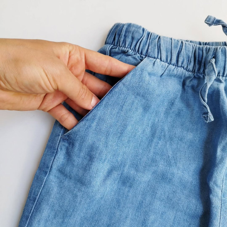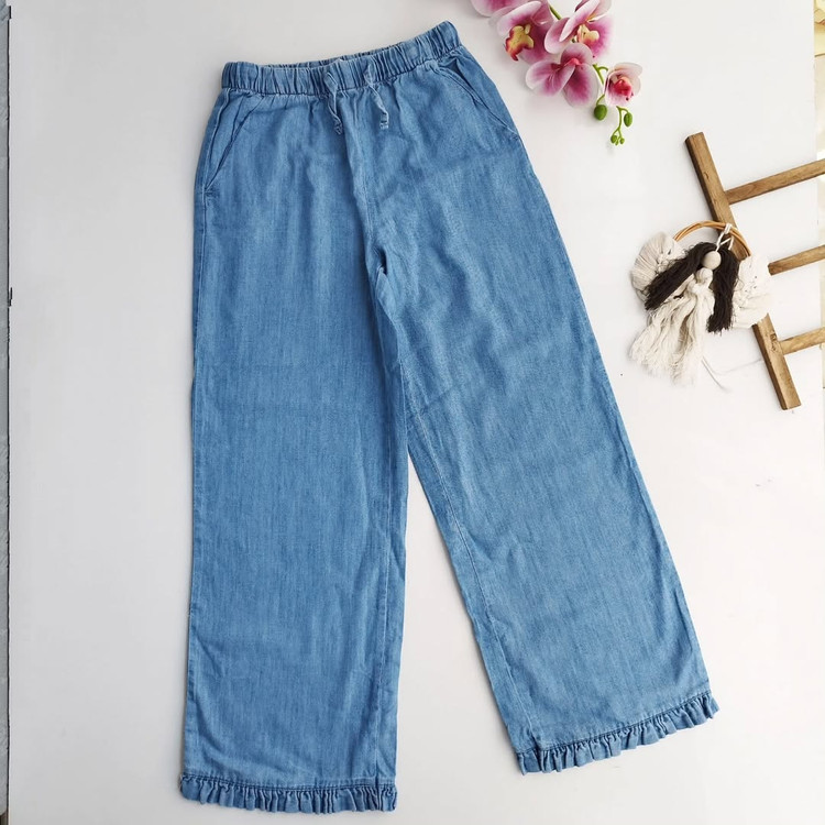 یه شلوار جین راحت برای استایل دخترای امروزی . شلوار جین کاغذی برند H&..M پارچه سبک و خنک کمر کش دمپا چین دار فوق العاده راحت