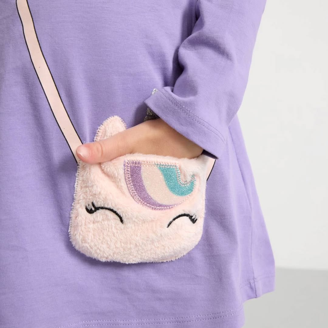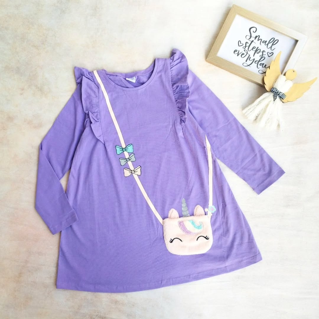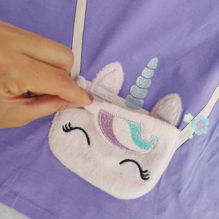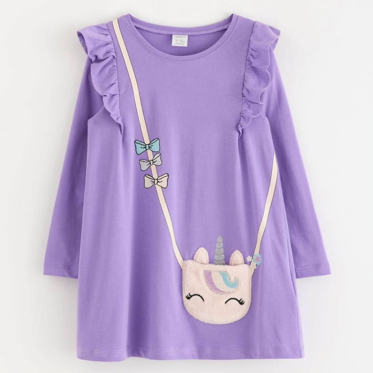 پیراهن دخترانه با طرح سه بعدی یونیکورن شاینی