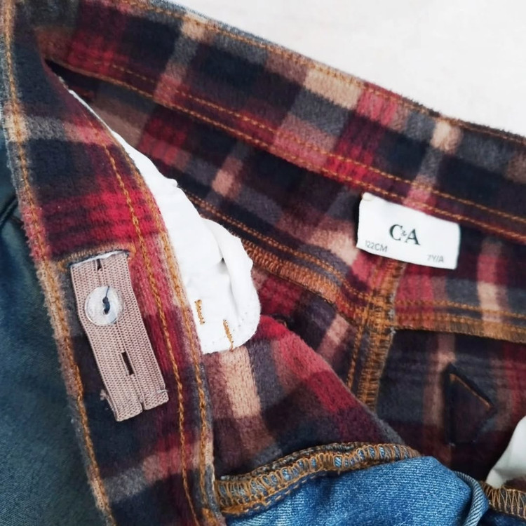 . شلوار جین لاینردار برند C&A راسته جذب با کش رگلاژ کمر پارچه کمی کشسانی دارد