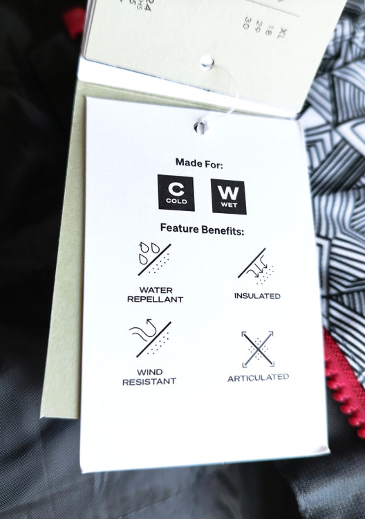 سه جیب زیپی در جلو کار جیب مخفی در داخل کار سه لایه و لایه میانی پشم شیشه ضد آب ضد باد با قابلیت گردش هوا دارای تکنولوژی گرمایش داخلی از منفی بیست درجه فارنهایت تا سی و پنج درجه فارنهایت