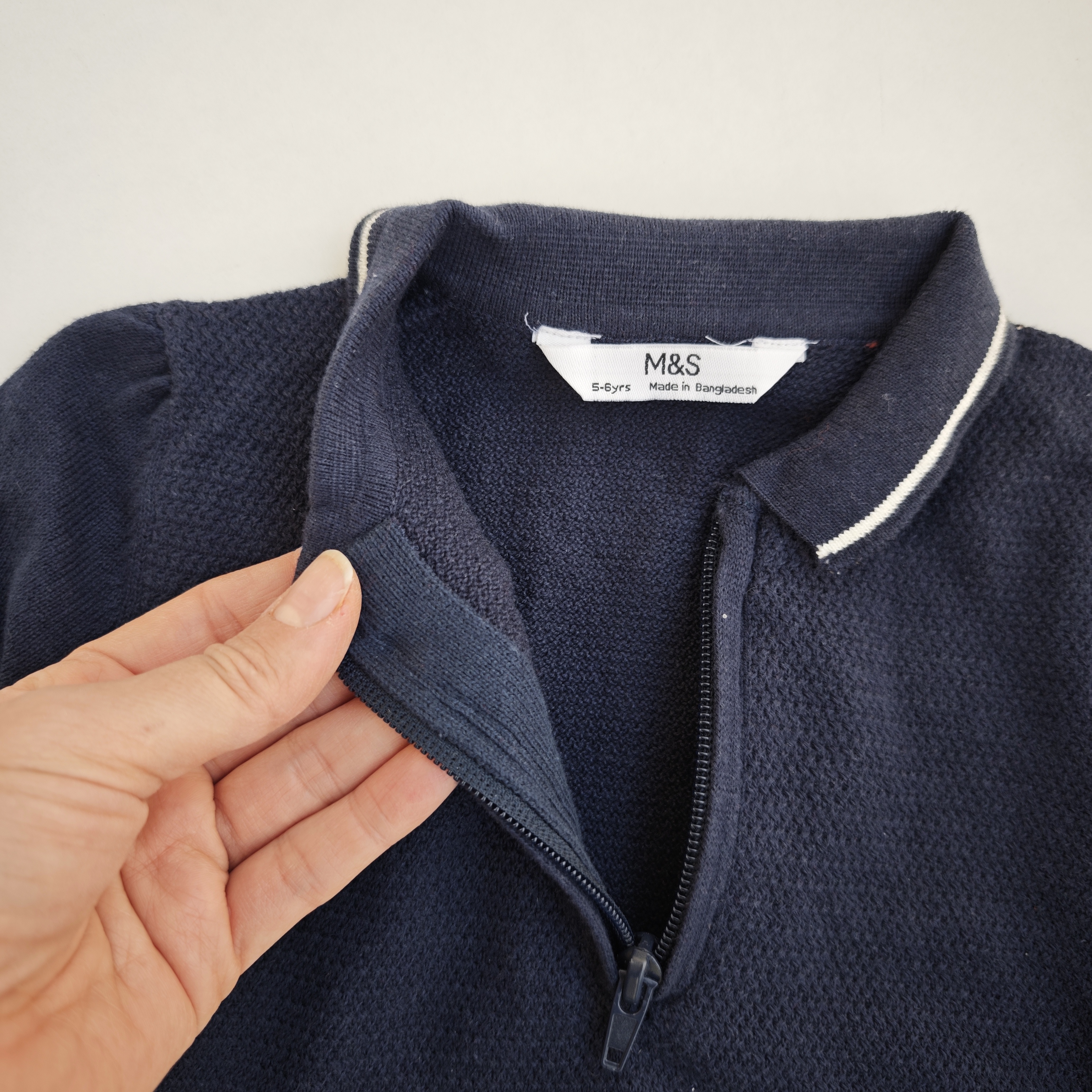 بلوز بافت نیم زیپ یقه پولو برند M&S 3-4 سال قد 38 عرض 28 آستین 34 2-3 سال قد 35 عرض 26 آستین 33 4-5 سال قد 39 عرض 29 آستین 37 6-7 سال عرض 42 قد 31 آستین 41 5-6 سال عرض 40 قد 31 آستین 39