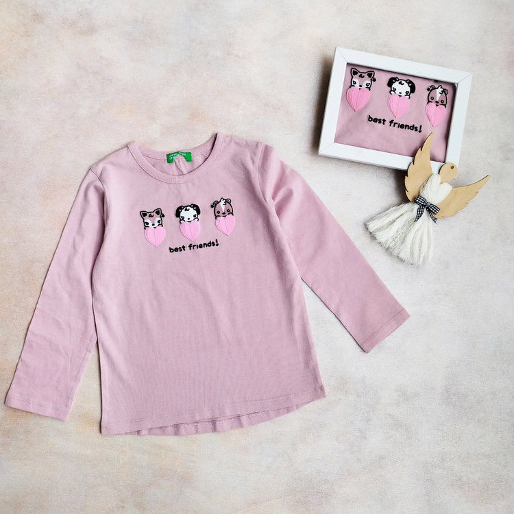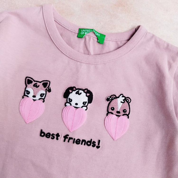 بلوز دخترانه برند Benetton طرح سه بعدی نخ پنبه ، نرم و لطیف